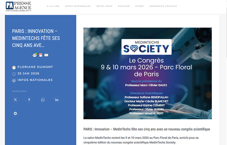 Le salon MedInTechs revient les 9 et 10 mars 2026 au Parc Floral de Paris, enrichi pour sa cinquième édition du nouveau congrès scientifique MedInTechs Society.