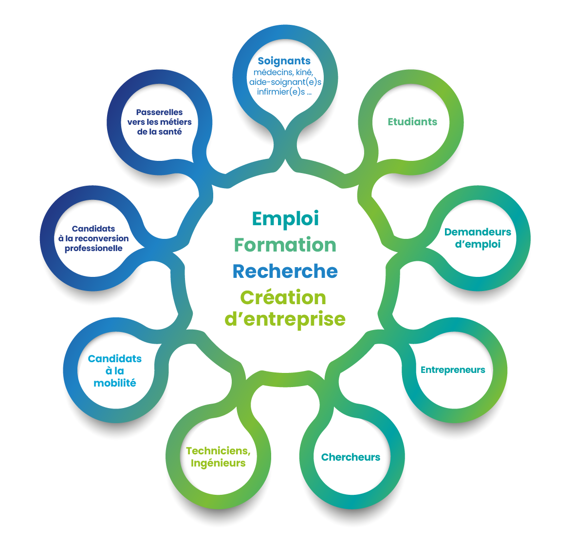 Sont présentes des structures de formation et d’accompagnement vers l’emploi et la transition professionnelle et des entreprises et startups qui souhaitent mettre en avant leur dynamique de recrutement actuelle et à venir.