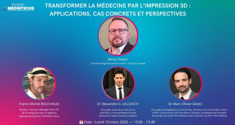 "De la personnalisation des dispositifs médicaux à la fabrication de pièces complexes à grande échelle, l’impression 3D révolutionne le domaine médical. Cette table ronde explore les applications actuelles de la technologie de l'impression 3D dans le domaine de la santé, avec des cas concrets illustrant son impact sur la santé. Nous discuterons également des défis qui restent à relever pour intégrer pleinement cette innovation dans les chaînes de soins et de fabrication. Rejoignez-nous pour une discussion enrichissante réunissant experts techniques, utilisateurs finaux, et influenceurs du secteur médical."